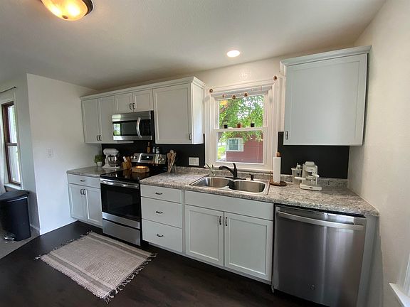 This completely remodeled ranch style home features new in 2021 all main level and basement sheetrock, interior doors, 2 new bathrooms, central AC unit, and all new kitchen cabinets and new interior paint and floor coverings. There are 2 bedrooms and a full bath on the main level and a third bedroom and 3/4 bathroom and utility room in the basement. The 40 x 24 triple stall garage (built in 2006) is heated. Windows, siding, roof and furnace are 5-7 years old.