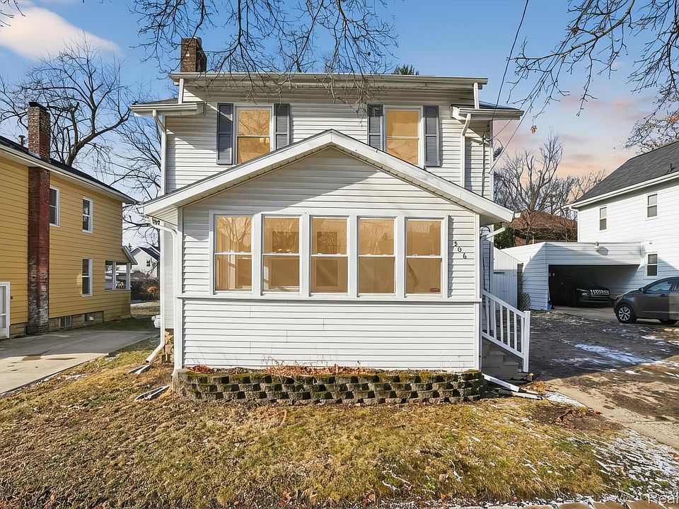 Welcome Home!!!! to 306 7th Street, a charming two story home that blends classic details with fresh updates across 1,278 square feet. The 3 season enclosed front porch offers a bright bonus space for relaxing or everyday use. The living room features a brick fireplace and plenty of windows allowing in natural light and open sightlines that flow easily into the dining area. The kitchen is inviting with fresh cabinetry, butcher block counters, tile backsplash, stainless steel appliances, and tile flooring. A main level laundry area add extra convenience.