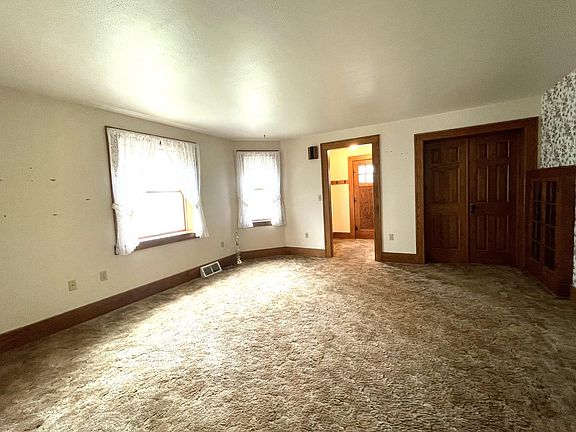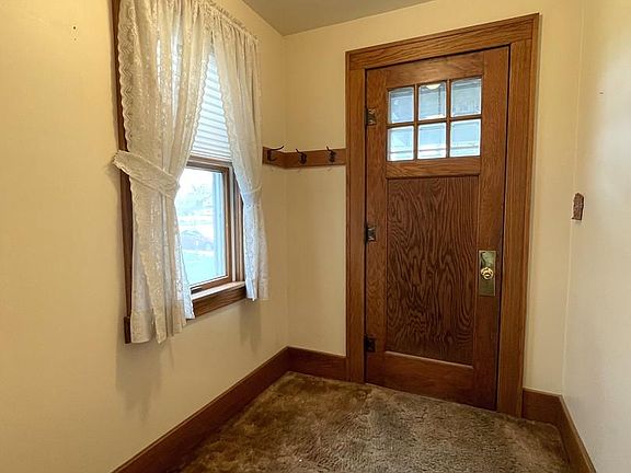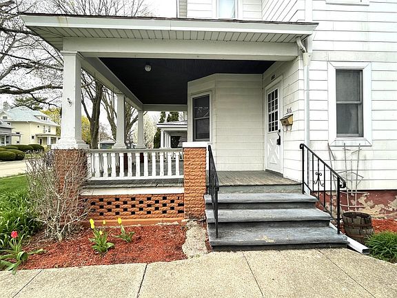 ENJOY THE CHARM OF YESTERYEAR in this 4 bedroom, 2 story home. Beautiful natural woodwork throughout. Spacious rooms including a family-sized living room with built in bookcase, spacious dining room, and main floor master bedroom with adjoining full bath. Walk in tub/shower. Main floor laundry with stackable washer/dryer included. Pretty oak kitchen with appliances (not warranted, dishwasher not working) and table space. 3 additional bedrooms up with bath. Tub in upper bath as is (drum trap leaks if used). Full unfinished basement offers great storage! Furnace (2008). Roof (2009). Garage roof (2020). Water Heater (2016). Anderson windows on the main level, vinyl replacement windows upper level. Grand open front porch. Enclosed side porch. (Porch roof 2020). Roomy garage 24'x26' on the alley with concrete drive. Nice yard too!