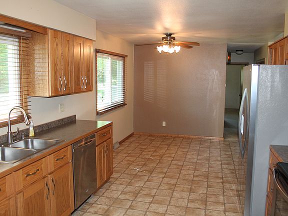 Move right in and enjoy -- the updates are done!! Kitchen update in 2013 with custom cabinets, new countertop, SS Whirlpool appliances and wood blinds. New GFA furnace in 2008, central AC in 2007. New windows and steel siding 2005. New shingles 2004. Updated bathroom, carpet and flooring. Located on a large lot with mature trees. Large fenced (chainlink) back yard with spacious patio. Large double garage with cement parking slab.