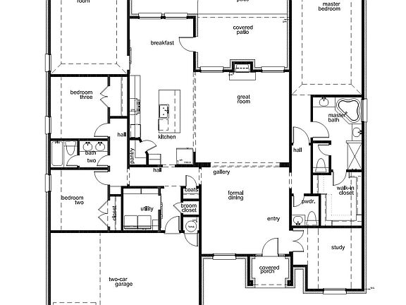 The Wade Floor Plan is the newest addition to our plan portfolio. You will love the 12 foot ceilings, stunning kitchen, beautiful floors and accent tile detail in the secondary bath. This one level plan also offers a media room, study and formal dining. This award winning floor plan has been featured as a model home and can be built with different modifications. Security System Sprinkler System HERS Rated Wi-Fi Compatible Garage Door Opener 10 Year RWC Warranty 1 Year Builder Warranty
