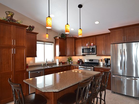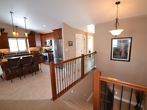 Your dream home is here! Check out this fantastic 4-bed 3-bath 3-car home offering open living area for the kitchen, dining & living room. The kitchen offers CHERRY cabinets with soft-close, a spice rack, QUARTZ counters, STAINLESS APPLIANCES & gas range, & under & above cabinet lighting. Cozy up to your beautiful gas fireplace with stone facade on cool winter nights, or on warm summer evenings step out onto your LARGE COVERED DECK from the dining room! The main floor offers a guest bed, full bath, plus a master bedroom suite with private bath, huge vanity, walk-in shower & large walk-in closet! And you will enjoy the convenience of main floor laundry. The basement features daylight windows, ample storage, huge family room stubbed for gas fireplace, 2 large bedrooms, & a full bath. The 3-car fully finished garage offers hot & cold water, & 2 drains. This home has low specials, is nestled in a quiet neighborhood & close to walking paths. Don't delay-call a realtor for a private showing!