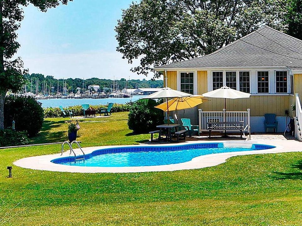 This is the waterfront you have been looking for! Wait until you see the fabulous water views from inside and out! First time on the market since 1972. Charming cottage style home has been lovingly maintained by sellers. Almost 1/2 acre of land that gently slopes down to waters edge where you will find the pier w/lift and approximately 110 feet of shoreline with a sandy beach. Fantastic elevation. No flood Insurance. No Hoa. Did I tell you there is an In-ground Pool and a full unfinished basement with great ceiling height? 1 Car detached garage As-Is. Lovely yard with mature trees.