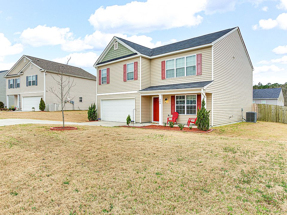 Beautiful Spacious Home features a Large Family Room, Immense Master Bedroom. Generous sized secondary bedrooms and giant closets. Convenient downstairs Office/Bonus Room. This home offers 2 car garage, patio, covered-front porch and large fenced in back yard. HOA has a beautiful pool, play area for the children and club house.