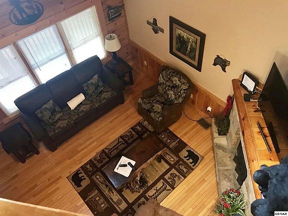 Wonderful location in city of Pigeon Forge..apprx. 1mi. off the Parkway and all the area attractions and restaurants. Cabin features two large Master Suites, deck on each level with cathedral ceiling and two gas fireplace's with hardwood floor in living room. Fully equipped kitchen with new Granite Kitchen Counter top and glass in the breakfast nook. Off the breakfast nook is a screened in hot tub room. Bathrooms on all three levels. The lower level boasts a kitchenette, living room with gas fireplace, bedroom. You have access to outdoor pool across street, indoor pool, community game room and fitness room on premises. Several updates over the past year by the seller and included in the doc's for your viewing, such as Granite kitchen counter top, Kitchen sink, Lights were replaced with efficiency LED lights and the list goes on... Just a great duplex style log cabin. Photographs supplied by Seller.