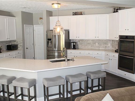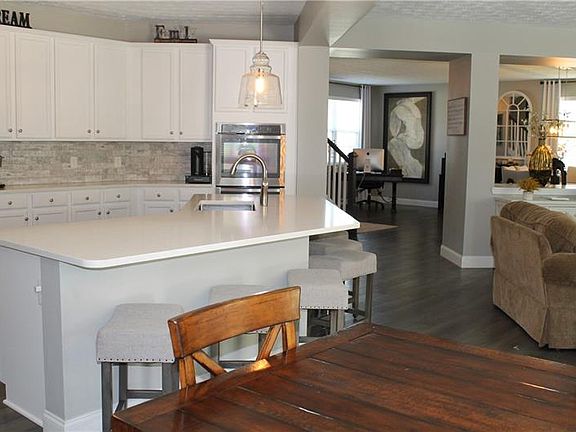 - Kitchen Features: Eat-in Kitchen, Pantry, View to Family Room, Kitchen Island, Breakfast Room, Solid Surface Counters, Cabinets White