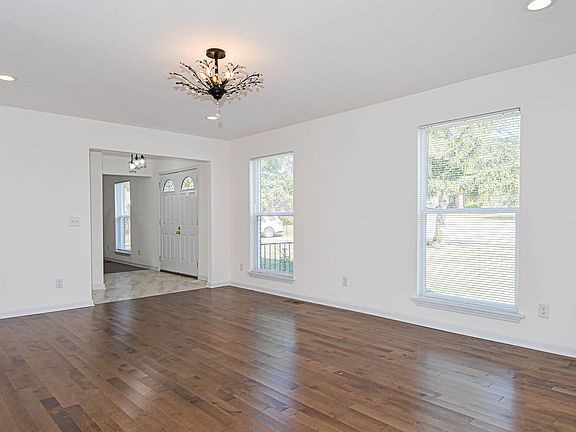 At the heart of the home is an open kitchen, equipped with granite countertops and new stainless appliances, including a gas stove, dishwasher, and refrigerator. Whether you're a culinary enthusiast or enjoy casual dining, this kitchen caters to all. The adjacent dining area, illuminated by chic chandeliers and recessed lighting, creates a perfect ambiance for entertaining guests.