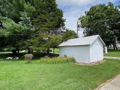 This 2 bedroom home is on a .40 acre lot hidden right in Carmi. The home has character and charm with its lovely wide wood trim and original wood floors underneath the current carpeting. The home has been updated with maintenance free vinyl siding and a newer electric panel. The unfinished basement affords opportunity for storage or hobbies. Outside you'll find that space abounds starting with a nice concrete patio with metal covering, 3 lots with plenty of shade trees and a 1 car storage building/garage.
