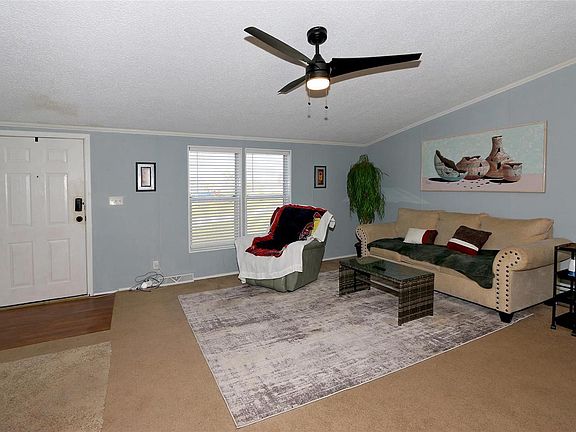 Enjoy your own 3 acres with a 3 bedroom 2 bath home! Located in a private subdivision with a beautiful 12+acre lake. The primary bedroom has ensuite bath separate tub/shower. Spacious living area with open kitchen with plentiful cabinets, counterspace and breakfast room. Updates include fresh paint, roof 9/24 furnace and central air 9/24 , additional gravel to drive, plenty of parking area. Detached building for storage. Refrigerator washer and dryer to stay. Deck off back to sit and enjoy the open beautiful countryside.
