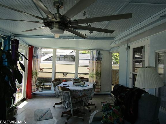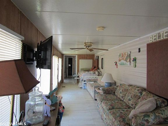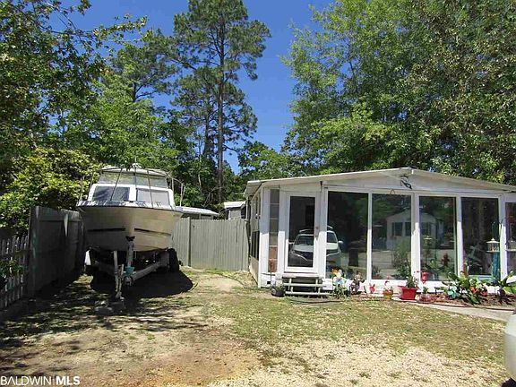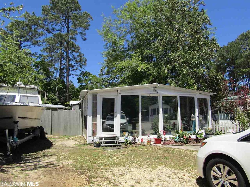 Park Model in Spanish Cove. Beautiful sun room on front of the house with wall ac. that is 12x23 This has two additions one that is 14x19 that owners use as master bedroom. No closet but also has a wall heat & cool system. Another addition of 8x15 that has two bunkbeads & 2nd bath & washer & dryer. Extra area could be a great walk in closet off a master bedroom. Shed & fenced yard. Plenty of parking for boat. One of the biggest lots in the Land Harbor area of Spanish Cove. Spanish Cove amenties include year round pool, fishing pier, tennis courts, 2 clubhouses and 24 hr security. Public boat ramp in Lillian.