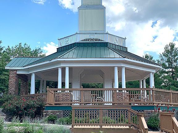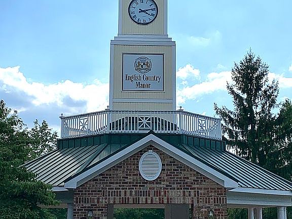 NO DETAIL OVERLOOKED!! Absolutely gorgeous 2 BD/2BA penthouse condo in highly sought after English Country Manor. Upgraded Kitchen w granite and stainless steel appliances! Beautiful wood flooring throughout! Master Bath boasts an amazing soaking tub. Family room off kitchen with a wood burning fireplace. Bonus sitting/sunroom opens to balcony with maintenance free decking overlooking views of the Ma and Pa trail! Community with Clubhouse, fitness room and inground pool! This beautiful home is a must see !