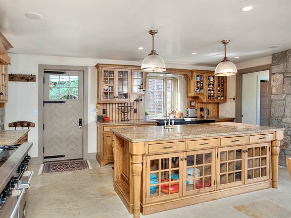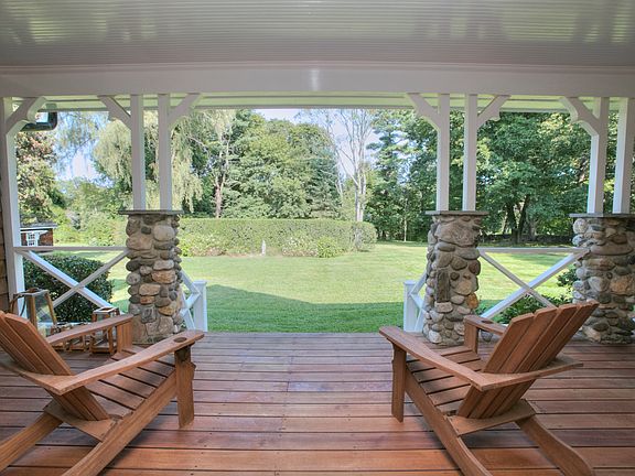 1908 Carriage House completely updated for the 21st Century with beautiful finishing elements. Very unique with gorgeous stonework inside and out, chestnut wide-plank flooring, soaring antique beams, covered porch overlooking the property, living room with magnificent stone fireplace and a 1 bedroom, 1 bath guest house with full kitchen, stone fireplace and separate entrance. Chef's country kitchen with limestone floor, honed granite counters and potbelly stove. Heart-shaped heated pool with cabana, full-sized solarium with vaulted glass ceiling, gorgeous property with stonewalls, pergola, sheds and barn. A rare and special property.