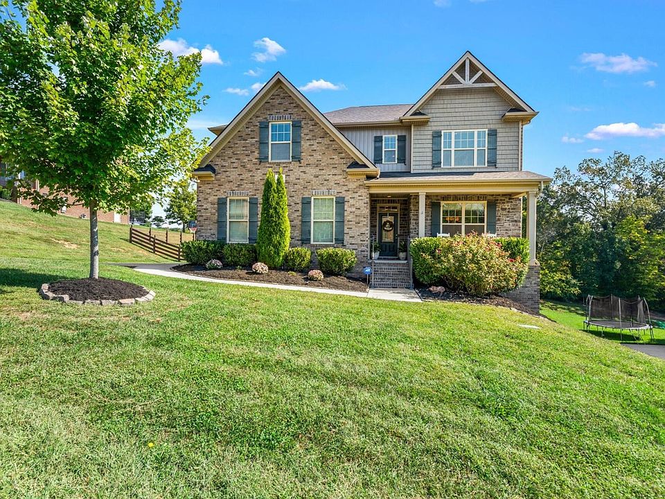 All Brick 4 BR 3.5 BA home on apprx 1/2 acre fence lot in Farragut! Main features beautiful hand scraped hwds, crown, recessed lights & 9 ft ceilings! Huge 19x16 LR w/dramatic coffered ceiling & gas FP--Open view to gourmet 21x14 kitchen w/lg island, granite tops, drop lighting, tile backsplash, breakfst area, butler pantry & all appls stay! Elegant dining awaits in the 14x13 DR w/ tray ceiling & dbl crown! Massive 17x14 master w/soaring 11 ft cath ceiling & adj 13x11 5pc spa-like tiled bth w/dual vanity, whirlpool, tiled walk-in shower & 12x7 wic! All guest BRS are huge w/ 2 having a lg tiled Jack & Jill bath between w/pvt sinks for both BRs. 4th lg BR w/ priv tiled bath! Lg 2nd flr landing! Mud Rm & tiled main lvl 1/2 bth! Storage galore plus Tall walk-in dry as a bone crawl space!