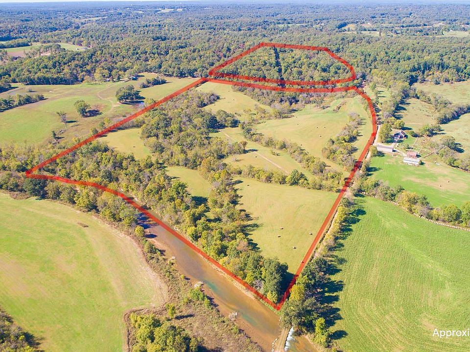 A quarter mile of Big Sugar Creek frontage, 70 private acres with a mixture of pasture and woods less than 4 miles by car from the Arkansas stateline and 25 minutes to downtown Bentonville or Rogers, Arkansas. Several updates throughout this country style 4 bedroom, 3 bath home with wide open living/dining/kitchen area for entertaining. Pantry, oversized laundry with outside access, and storage/mechanical room off garage keeps everything handy. Capture the warmth from the fireplace or if power loss with a wood burning insert. Quartz countertops in the kitchen and central vac for easy cleaning. Numerous pastures would be ideal for rotation and haying. A year around spring feeds 2 decent sized ponds stocked with fish. Deer, turkey, and other wildlife like to call home here. HVAC and water heater have been updated in last 5 years.