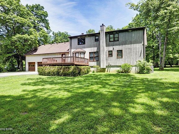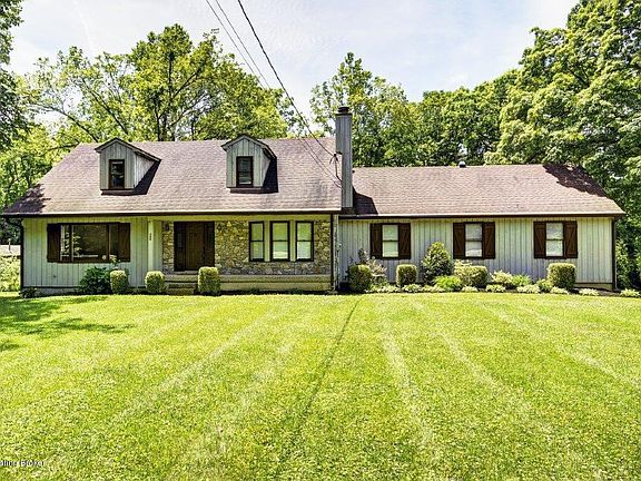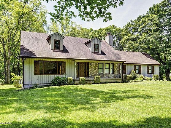 This 2-story creek-stone and wood siding home is located on about an acre in the heart of serene Pewee Valley. It is move-in ready! The original owner was the builder and had a great eye for detail. With 4 large Bedrooms and 2 Full Bathrooms, there's plenty of room for all. The private first floor Master Bedroom opens to an updated Full Bathroom and offers views of the back property. Random width solid oak flooring runs throughout the Family Room and all hallways. A large open concept eat-in Kitchen with bay window opens to the Dining Room and Family Room and also accesses the back deck overlooking the luscious yard with a built-in wood play-set. The granite countertops, glass tile backsplash, and black appliances give an updated look.