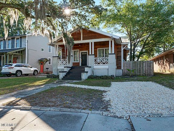 Completely remodeled in 2020, this elegant single family home sits on a tree-lined street in highly desirable Sunset Park, just minutes to downtown Wilmington and only steps from Greenfield Park and Greenfield Lake Amphitheater. A thoughtfully landscaped grounds invites you onto the gorgeous front porch that is surrounded by beautiful pinewood and hand crafted woodwork that lines the roof and provides an homage to the original 1920 construction. Upon entrance, you are warmly greeted by pinewood throughout the living area, a bright and open floor plan seamlessly connects the living room to the kitchen and ultimately leading to the inviting, sunny backyard. Meticulous attention to detail is presented throughout with stunning marble kitchen countertops, customized backsplash, soft close drawers/cabinets, farmhouse sink, stainless-steel appliances, and exquisite tile work in the bathrooms. The walnut steps adjacent to the living room lead you upstairs where you'll find another full bathroom, bedroom, and a loft area that provides additional flexibility. The generously sized backyard provides the perfect setting for relaxing, gardening and entertaining. Lastly, the property can come fully furnished! Come check it out before it's too late!