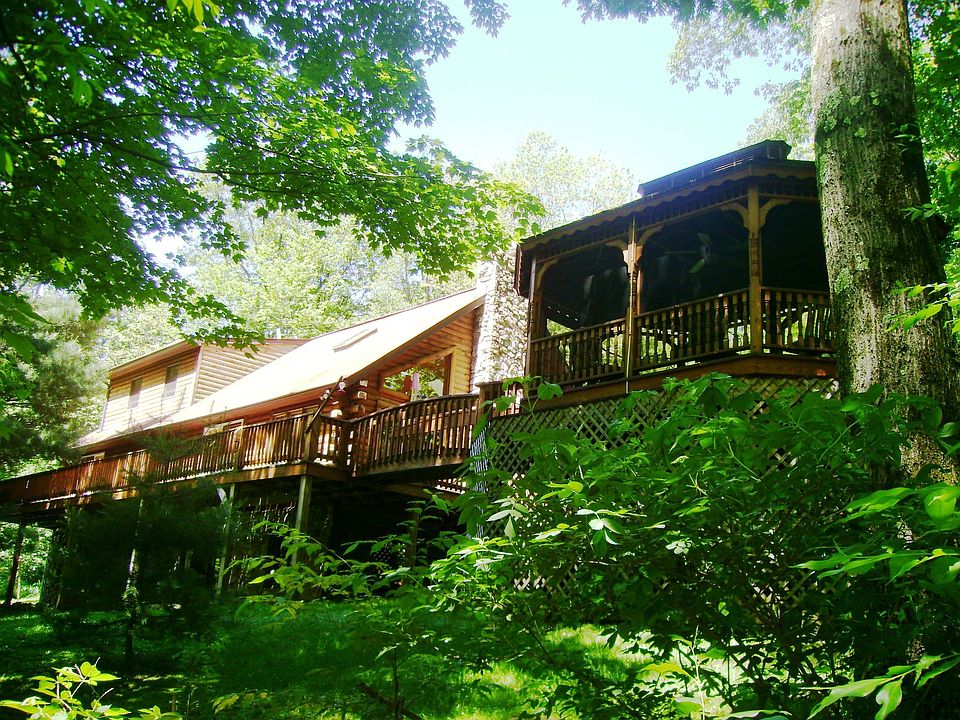 Spacious log home situated on 2 wooded acres, 5 min. form Wisp, ASCI, Deep Creek Lake & more. Meticulously maintained, roof is less than 2 yr old, new well pump. KT, DR & LR are open concept w/cathedral ceiling and stone FP w/gas logs, originally wood burning,can be converted back. FR w/kitchenette, upper end cabinetry, Vermont Casting gas stove.Deck, Gazebo, Pavilion w/FP & so much more!!!