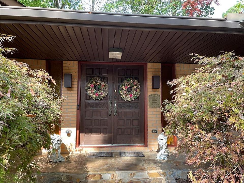 Unique Mid Century Modern on a very private cul-de-sac just outside of Smoke Rise. One owner ranch home on a finished basement features true to the 70's decor. There is a sunroom off the breakfast area and a greenhouse with a hot tub and a 25x18 pool. Lots of specimen tree and plantings make this place beautiful in all seasons. Walk into the foyer and then to your right is the kitchen with a brick arched cooking alcove and a design that has lots of area and efficiency in its design. A breakfast area is adjacent. Off the breakfast area is an oversized garage with storage. The sunroom is also accessed from this room. The dining room is easy to access from the kitchen and the great room. Every window shows well planned gardens cultivated to their current maturity for year round beauty. The great room has chevron patterned paneling going up to the cathedral ceiling with a fireplace at the opposite end. The first bedroom off the hall has loads of shelving and a mural painted on the wall. The bathroom off the hall has a large soaker tub and retro decor. The second bedroom has a unique mural. The primary bedroom suite takes advantage of the view of the yard. The bathroom here is retro as well with a walk-in closet that has built in closet systems. Downstairs is a family room with a bar and a walkout into the greenhouse with a hot tub. There is also a bedroom and a bath with a couple of storage rooms on this level. The large green house with a hot tub is a great place for plants and serenity. Walk out into the large courtyard style patio which leads to the pool. There is also a storage building. The estate sale is November 2 and 3