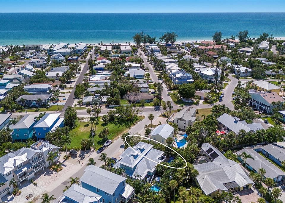 Your Anna Maria Island Oasis Awaits: Turnkey Luxury Just Steps from the Gulf! Discover the ultimate Anna Maria Island getaway in this stunning, elevated 3-bedroom, 3.5-bathroom home, perfectly poised just two blocks from the sugar-sand beaches of the Gulf. This isn't just a home; it's a turnkey investment and a luxurious retreat all in one. Step inside to a bright and open floor plan, thoughtfully designed for seamless living and entertaining. While the main living area is perfect for gathering, each bedroom is on its own private level, offering unparalleled tranquility and privacy for every guest. A versatile bonus bunk room provides extra space for friends and family and can easily be converted into a fourth bedroom. The private backyard is a lush, tropical paradise, completely fenced and meticulously landscaped. Spend your days basking in the Florida sun by the heated pool, complete with a relaxing spa, sun shelf, and a convenient cocktail table. An outdoor shower makes it easy to rinse off after a day at the beach. This home is built for peace of mind, featuring a durable metal roof and all-impact windows, sliding doors, and a garage door. It is zoned for weekly rentals and comes fully furnished with future bookings already in place, making it an incredible investment opportunity. Simply pack your bags and start living the island life—not a single detail has been overlooked.