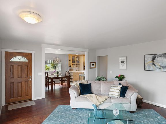 Location, Location and Lots of Charm--a winning combination! Built in 1964, this light and bright, 1355 sq ft, 3 bedroom/1 full bath home is situated "above the street" in an easy walk to town location with peeks through the trees of the Big Blue Bay! The open floor plan is an entertainer's delight--enter the living room that opens to a sunny deck in front, adjacent to the dining area that's large enough to host the Thanksgiving group, flowing into the chef's dream kitchen, with lots of counter space, breakfast bar, gleaming stainless appliances and separate pantry which joins the oversize 1 car garage with laundry area in the back. The three bedrooms are very spacious and two open to the sunny, private back patio. Remodeled tastefully, gorgeous wood floors throughout most of the home and double pane windows help keep it warm.