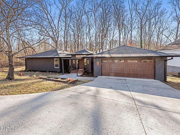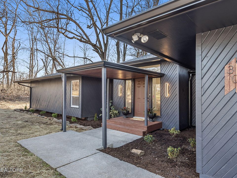 Located just minutes from all Oak Ridge has to offer, shopping, dining, parks, entertainment, and the lake, also just 10 minutes from Pellissippi!! This completely renovated contemporary home is truly one of a kind! It's mid century modern style and unique layout are absolutely stunning! Cathedral ceilings throughout the entire main level paired bright neutral colors and natural wood tones provide a bright open feel! Spacious kitchen with custom cabinetry, black stainless appliances, quartz countertops and plenty of storage make it a chefs dream! Oversized master suite on the main level offers a gorgeous accent wall and modern lighting, a large sitting area complete with a color changing LED fireplace. The beautiful master bath is complete with a large walk in tile shower with free-standing soaker tub and glass enclosure. Just off the master suite, you will find a private access to the covered gazebo in the back with incredible pine ceiling making it the perfect place for your morning coffee! From the gazebo, you can also enter the main living area which also has a 2nd deck outside an oversized glass door overlooking the wooded property and plenty of privacy. The spacious finished walk out basement offers a 3rd bedroom and rec room perfect for entertainment. Oversized 2 car garage with a space saving trackless opener, new HVAC, water heater, windows, and much much more make this house a definite must see!