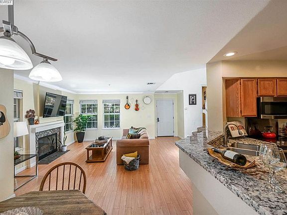 Delightful, light & bright, townhouse-style condo in attractive and well-maintained California Sunridge! Two-story end unit siding to pasture land with a private walk to secluded entry; no one above or below! An abundance of windows with views brings the outside in and adds to the serene feeling of being close to nature. Move-in ready with all appliances included. The open living area features volume ceilings, bamboo floors & a cozy fireplace with beautiful surround. The adjacent dining area with access to the inviting backyard/patio & the spacious kitchen with stunning granite counters are perfect for entertaining inside & out! Upstairs, the master features a gorgeous remodeled bath and a balcony deck, with the secondary bedroom & updated bath down the hall. The 2-car attached garage with laundry is great for storage & livability! Desirable San Ramon Valley schools! Conveniently located near fwy access, Costco, restaurants, shopping, the Iron Horse Trail & Las Trampas Reg. Wilderness.