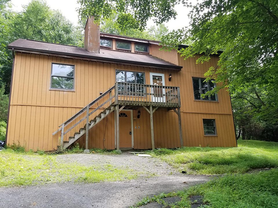 Nestled in the woods of Lake of the Pines, this HUGE remodeled 4 bedroom 2 bath contemporary home with heated finished basement is exactly what you're looking for in the Pocono Mountains. Plenty of room for a large family! This home offers a large living area in the walk-out basement along with a smaller room that can be turned into another bedroom or office. The main living area upstairs has a fireplace; contemporary kitchen with all new stainless steel appliances and granite counter tops; dining area; two bedrooms and a full bath; upper level has another two bedrooms along with a loft and another full bathroom. Close to all major highways and shopping. Move-in ready, just unpack and enjoy everything the Pocono Mountains has to offer!!