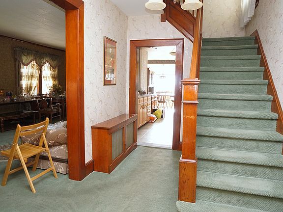 Well maintained property, 1st floor with entry foyer, eat-in kitchen, living room & dining room, hardwood flooring under carpet, tiled kitchen floor. 2nd floor with 3 bedrooms (3rd bedroom is smaller) and full bathroom. Walk-up attic to a finished room and storage space. Steam heat and radiators. Semi-finished basement with workshop and walk-out door to spacious backyard. Updated roof.