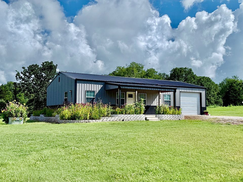This home is an absolute gem. Only two years old and set on six spacious lots, this barndominium is 2 bed/2bath with 1050 sq ft of living space and a 350 sq ft single car garage. The master bedroom features a large stone shower and walk in closet the size of a small bedroom. The open style kitchen and living area hosts sliding barn doors, ample counter space, and a nice pantry. This beauty is a must see!