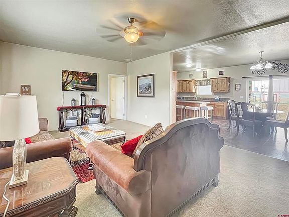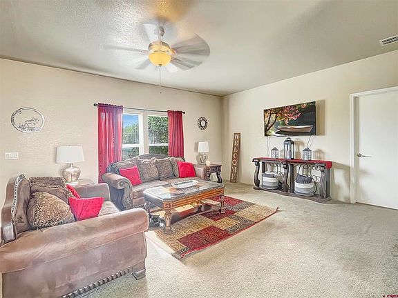 Here is your chance to live in the "Pinto Bean Capital of the World". This amazing manufactured home sits on two city lots, has a split floor plan with with 4 bedrooms and 2 bathrooms with 9 foot ceilings! The main living area is open to the dining area and huge kitchen. The kitchen has plenty of cabinet and countertop space to store all your goodies. The home also has a second living area with a fireplace that has been used as a fifth bedroom. There is a small desk area in the hallway as well as an office/hobby room adjacent to the utility room. The home has a central heating and cooling. The back yard is fenced and also has a large storage shed. The green lawn is edited in to show what it could look like but is currently bare ground ready for your personal landscape plans. This could be a great "hub" to travel from being located in-between the Arches in Moab as well as the Mesa Verde. Call today to set up a personal tour!