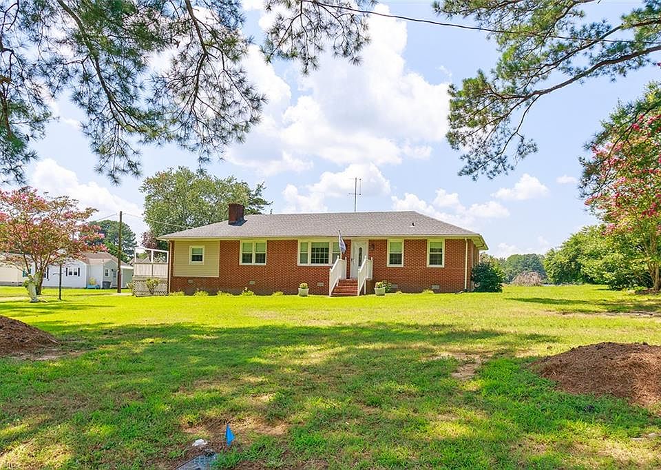Welcome to 306 E. Church Street, Wakefield, VA. You will love this well-maintained brick home on almost 1 acre with public water and sewer. The home offers new wood and wood laminate flooring through out, ceramic tile baths, a large living room with a masonry wood-burning fireplace and gas log insert, a gracious separate dining room , new appliances in kitchen, a house back entrance to a large laundry room with washer/dryer, cabinets and a storage closet. There is also an adjoining shower bath. An additional full hall bath is located off the 2 main house Bedrooms with a 3rd bedroom or office located with an exterior door to the deck. The double lot includes a 2-car detached garage, a carport, additional storage buildings, and plenty of room for a large garden. The home is centrally located half-way between Richmond and Hampton Roads, Call listing broker to schedule an appointment to view.