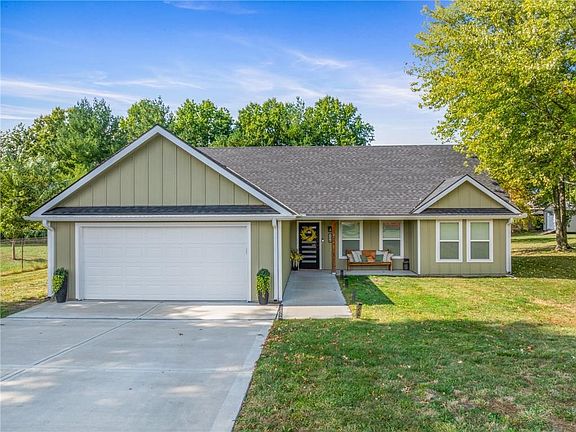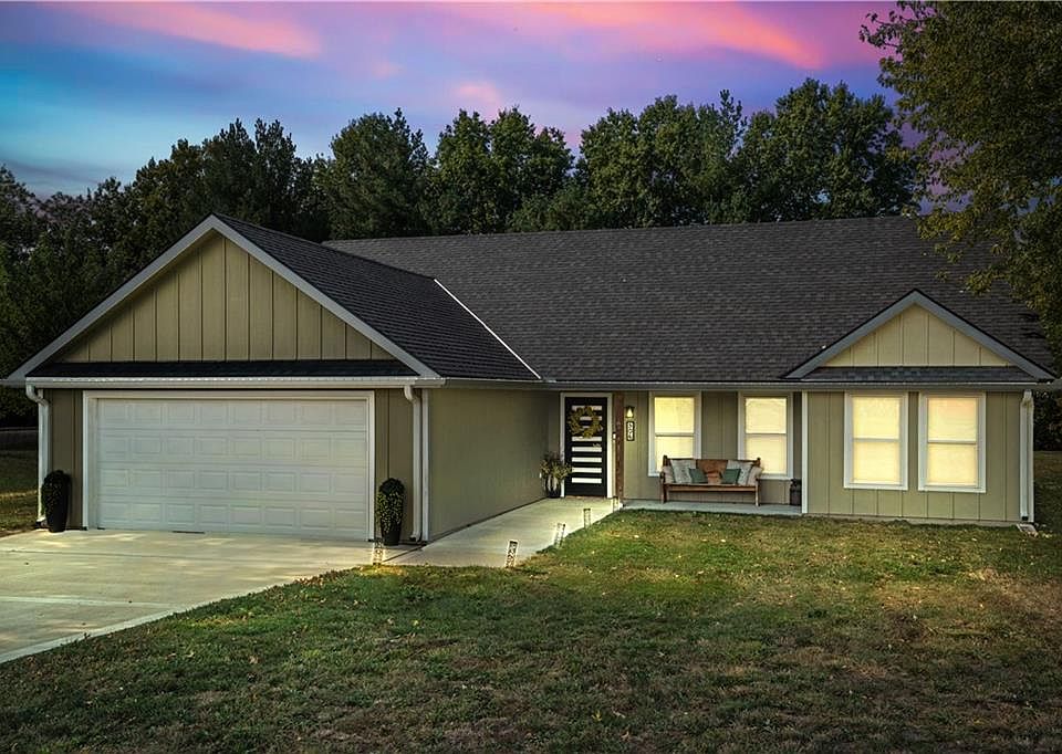Reduced! This beautiful newer-built ranch near Lake Concord in Plattsburg has all the charm and comfort you’ve been looking for! Featuring 3 bedrooms, 2 baths, and an open, airy floor plan — the spacious living room flows right into the kitchen and dining area, perfect for everyday living or entertaining.The kitchen shines with hickory cabinets, a large island, and tons of natural light. Enjoy easy living with a smart, functional layout and a convenient attached garage. Kick back on the covered patio or sip your morning coffee on the front porch — this home was made for relaxing!