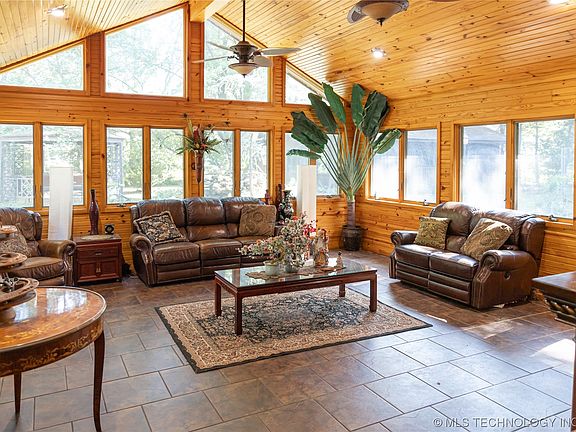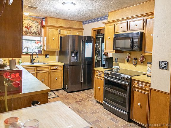 Motivated seller! Come home to this outdoor lover's paradise! Beautifully crafted custom home situated on 2 city lots with detached 28x32 shop on premises-this one will check all the boxes! Sit outside and relax on one of the covered patios and enjoy the stocked koi pond surrounded by mature trees and ample greenery. The 3 bed 2 full bath home boasts spacious bedrooms, each with it's own walk in closet for major storage. A great room has been recently added, with beautiful woodwork and tile floor, creating a large/open extra living area. There is a storm shelter located in the attached 2 car garage and 2 separate storage buildings. Basketball court and playground located just across the street. A very quiet, private area located in South Coffeyville school district. No known defects but selling as is.
