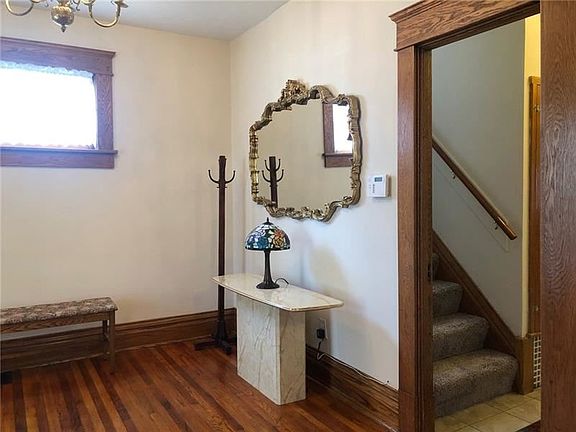 Such a classic beauty! This 2 and a half story home will "wow" you from the welcoming front porch to the beautiful foyer full of gorgeous oak hardwood. The open floor plan is perfect for entertaining. The gorgeous dining room has solid oak pocket doors to separate it from the lovely living room. Step down to the first floor family room with a fireplace and half bath. No need to go to the basement to do laundry. It's on the first floor! The large sunporch with windows galore and a vent less gas fireplace will make you feel warm all over! The 2nd floor features brand new carpet, 3 generous sized bedrooms and the attic has 2 large rooms for all of your storage needs. The entire interior of this house has been freshly painted. The basement has a half bath and a beauty shop area plus a workroom area. Nice sized yard and storage shed.