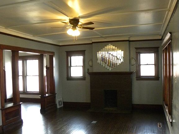 A lot of space for family in this 4 bedroom all brick home with a full unfinished basement with several possibilities. The driveway is shared leading back to 2 car detached garage. Close to downtown & park. Red Oak floors along with some coffered ceilings, fireplace and stained glass. If you like the charm of older homes, this one has it.