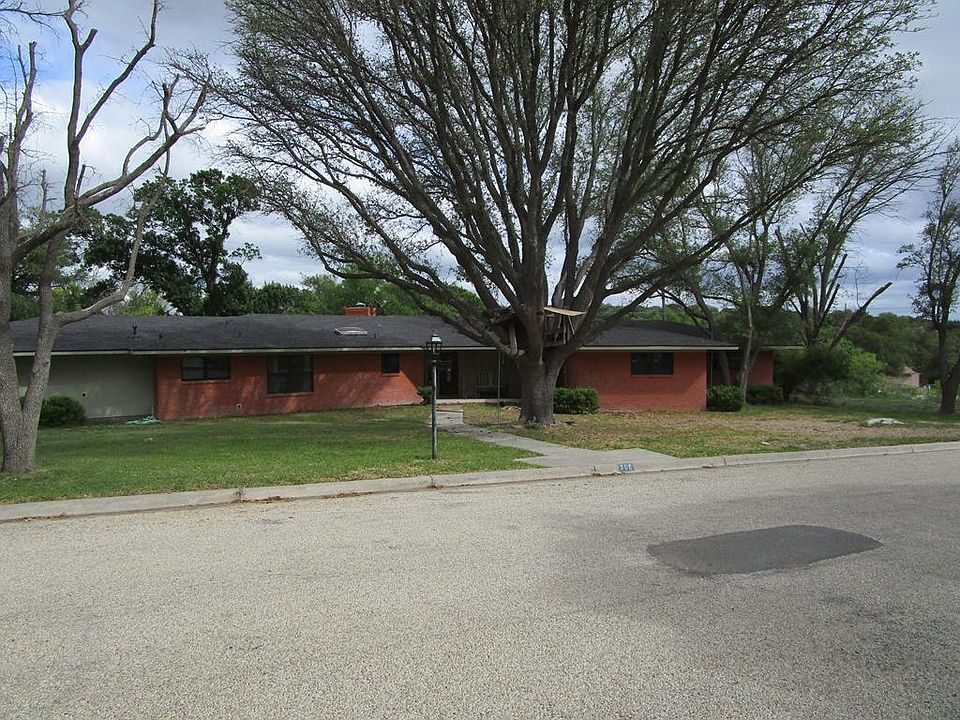 Great price for this large brick home located on Edgemont Road in the Castle Hills Addition, Sonora, TX. This 4BR/3 B home is situated on 2 lots. The interior sports a family room with bay window and wood burning fireplace, large utility room with a bath, built-ins, abundant storage, and a large walk-in closet in each bedroom. The carport has a studio/bonus room supplied with electric and water. In the fenced backyard you will find an open patio, garden area, sprinkler system, and large trees. Spacious inside and out.
