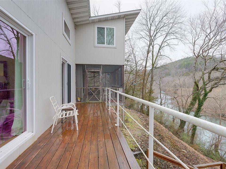 Beautiful hard to find home overlooking the Little Buffalo River. The family room and both bedrooms have glass doors overlooking the river. A screened porch and deck run the length of the back of the house. Bonus loft is being used as a bunk room now but could also be an office or study. Stairs from the deck lead down to the river and the front yard is low maintenance with a rock fire pit. Unique wood floors throughout the downstairs and both bathrooms are tiled. Very secluded, well designed and right in the middle of the sought after town of Jasper. Agent related to seller.