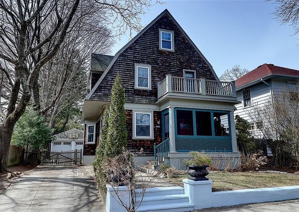 Turn of century shingled Dutch Colonial. Pretty screened in front porch, entry foyer with built-in's, double parlor living and dining with fireplace. Four bedrooms (plus office), 2.5 baths, optional laundry room on second floor, partially finished basement, newer windows and updated electric. New rear deck, slate patio, fenced in landscaped yard and 2-car garage. Walk to Wayland Square, public & private schools and parks. Wonderful home in prime location!