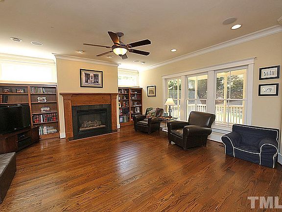 Gorgeous Meadowmont home w/full front porch on .31 acre wooded lot! Open kitchen w/stainless appliances/custom cabinets/granite countertops, family room w/builtins, formal dining/breakfast area bay window, 1st flr master w/whirlpool tub/tile glass shower/walkin closet, laundry room, huge bonus room, screen porch/deck, extensive landscaping w/stacked stone borders. Hardwood floors on 1st/2nd floor, tile baths! Updated HVACs. New Architectural Shingles! Walk to Rashkis Elementary! Conv to UNC/Duke/RTP!