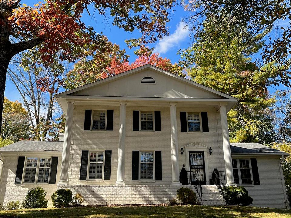 Motivated Seller! Amazing opportunity to own this all brick 'Southern Colonial' in one of Chattanooga's most exclusive and sought after areas of Lookout Mountain, Tennessee! This 2-story, 4 bedroom, 3.5 bath with finished basement sits on a graciously appointed .72 acre, winter brow view, deep lot with rocking chair front porch, mature landscaping and fenced backyard. A true 'diamond in the rough.' With some updating this home can be a true masterpiece. Walk up the wide brick stairs and pass through the front door to a spacious entryway and an elegant staircase. On the main floor you will find a formal dining room and living room with winter brow view, a huge den with gas log fireplace and wet bar for entertaining, large kitchen with pantry and breakfast area, half bath and master suite. Upstairs you will find 3 large bedrooms and 2 full baths with tons of closet space. Downstairs the finished basement offers a huge office area, flex space /workout room, cedar closet and tons of storage. The 2-car garage has even more storage areas.