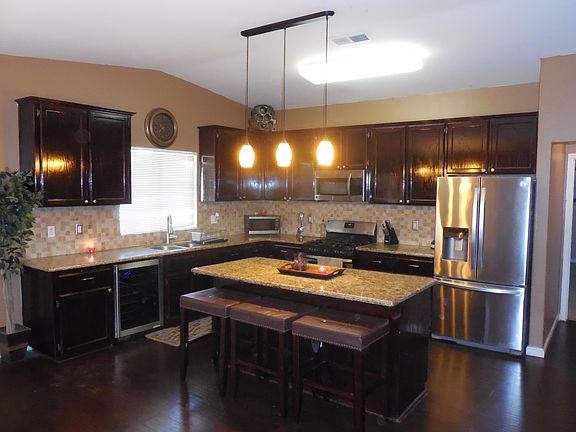 This beautifully updated split wing floor plan is located in the Casa Bella neighborhood of South East Bakersfield. Property features a large floor plan with a huge great room perfect for a big family. Property has 4 good sized bedrooms, 2 bathrooms and is in excellent condition. This home has been well maintained and upgraded with granite countertops and newly stained cabinets, wood flooring, stainless steel appliances, a stainless steel wine fridge, updated electrical fixtures, above ground pool and much more.