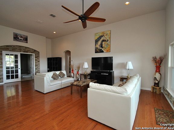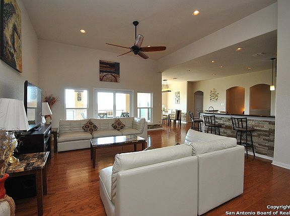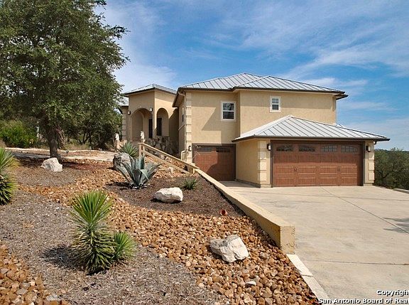 Beautiful custom ranch home. 2.23 acres of native Texas hills. 5 bed 3.5 bath. Breathtaking views of the Hill Country. Two Covered patios. Oversized 3 car garage. Study/office. Guest suite. Game Room. Gourmet kitchen w/ granite countertops. Gated community boasts walking trails, fishing ponds, horse stables and storage for your boat or RV.
