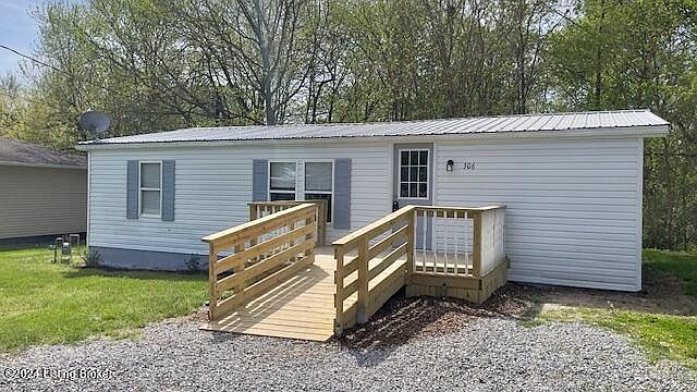 Discover the perfect blend of comfort and convenience in this newly remodeled home nestled in Leitchfield. This home has 960 square feet, this home is ideal for those seeking to downsize without compromising on quality. Featuring 3 bedrooms and 2 baths, including a bonus propane heat wall unit, it ensures year-round comfort. Enjoy the ease of low maintenance living with newly installed decks equipped with ramps, perfect for outdoor relaxation. The open kitchen and living room layout create a welcoming atmosphere, complemented by brand-new appliances that remain with the home. Embrace the outdoors with a short stroll to Dewitt Park or explore the town within walking distance. Don't miss out on this opportunity to embrace a lifestyle of ease and comfort in the heart of Leitchfield