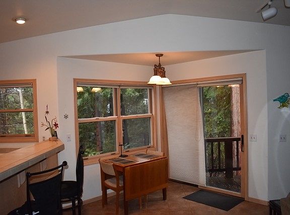 Fabulous location!!! Adjoining lot included in price! This sweet home is situated on a beautiful treed mountain lot within walking distance to downtown Mt. Shasta. This quality home features wood casement windows, tile kitchen counter tops, eating bar, open floor plan to the living room with vaulted ceilings. The master bath has a tile spa soaking tub and the the large master bedroom has a wood balcony looking down into the space treed backyard.
