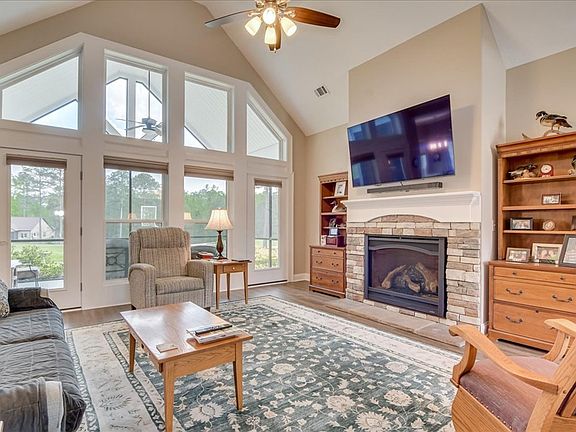 Beautiful home on Hole #1 of the Monticello golf course in Savannah Lakes Village. This home is only four years old and move in ready. It features a large three car garage, with epoxy floors and many cabinets, and a cathedral ceiling screened porch, also with epoxy floors. Extensive landscaping, outdoor/landscape lighting and an irrigation system are beyond the norm in the area. Upgrades also include additional UV/EV coating on windows, and a large floored storage area in the attic. The cathedral ceiling great room features floor to ceiling windows for a great view of the golf course fairway and green, a high end large direct vent HeatNGlow fireplace, a new 65” ceiling fan, and direct access to the screened porch. The kitchen includes a large refrigerator, five burner gas range and oven, garbage disposal, microwave, quiet dishwasher and plenty of cabinets. The countertops are a unique granite pattern. Closet pantries/storage are both in the kitchen and washer dryer room. In addition to the three bedrooms and the dining off the kitchen, there is a 13 ft x 11 ft front room that can serve as either a larger dining room or office. As built plans are available for more details.