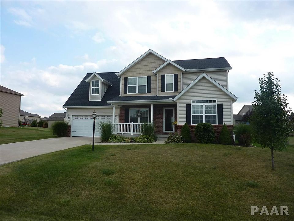 4 bedroom, 2 1/2 bath home in Germantown Hills popular Coventry Farms Subdivision. Amenities include; full front porch with brick, extra deep garage with workshop area, and a Full size truck will fit. Open floor with granite tops in kitchen and all stainless appliances stay including convection stove, main floor office, large master suite with tile shower, basement with 9' walls-bath rough-in-and insulated exterior walls, just ready to be finished. Large Yard is fenced with patio. Assoc. fee includes neighborhood pool and tennis courts. Don't miss this great home.