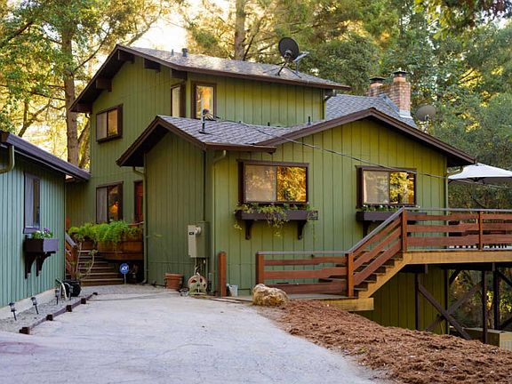 Beautiful home located on over 3.3 gorgeous AND USABLE acres with vaulted wood beam ceilings to the sky, incredible decking with views, and YES... A SIX CAR GARAGE! Imagine what you can and will do with that!!! This beauty features 2 fireplaces, stunning wood flooring and a newly remodeled master bath. There is also another separate workshop studio and plenty of flat land for the kids and pets to play and roam. All new interior paint with lots of windows that bring the outside in. The downstairs family room is off on its own when you or the family need their separate and private space, with access to the yard where you can walk through the redwoods. Literally 5 minutes to Glenwood Drive and another 5 minutes to the high school. Shopping and easy freeway access will take you to the beach or over the hill to work. Did I mention AWARD WINNING SCOTTS VALLEY SCHOOLS?
