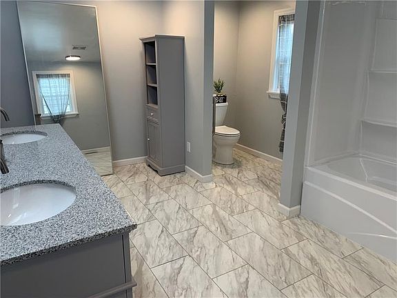 *NEW BATHROOM* Want to go on vacation without leaving your home?! Backyard provides ease for outdoor entertaining and enjoyment and also in walking distance to the river! Property includes LARGE covered back porch & fenced in yard with above ground pool, sauna & powder rm, and natural gas grill in pool area. This home has newer vinyl siding with HUGE detached garage & carport. Gas burning brick connecting fireplace in LARGE game room. First floor also includes eat-in kitchen, full bath, and office. Upstairs 3 nice sized bedrooms and WAIT! the enormous upstairs spa- inspired bathroom with granite double sink countertop!! There is a furnace and air conditioner in attic and basement. What a GREAT neighborhood!