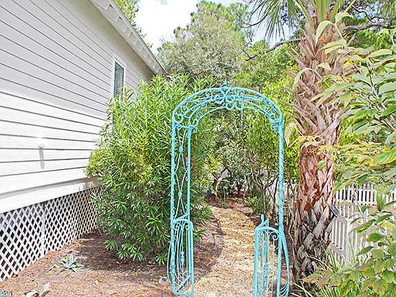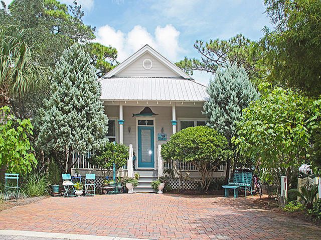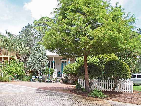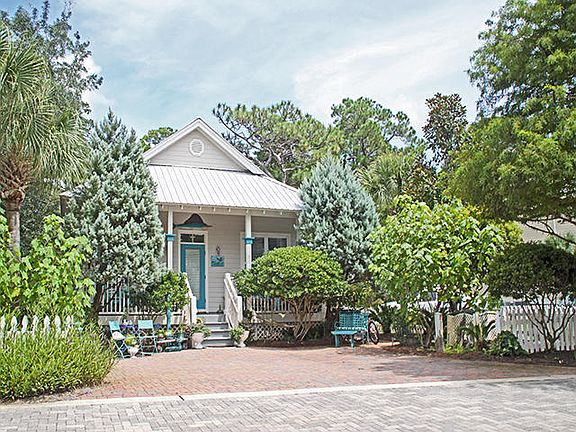 Incredibly charming 1 story Florida Cottage in the exclusive 30A community of Old Florida Village. Close to the beach, this quiet cul-de-sac community has 2 pools and lots of greenspace creating nice buffering between the streets and has no through traffic. Gulf Place is 1 block away offering unique shops, world class restaurants, weekly outdoor concerts and 'The Artists at Gulf Place'; resident artists. Although this well maintained 3 bedroom, 2 bath home is just 1,200 SF it has 10 ft. ceilings and open living space giving it a larger feeling.