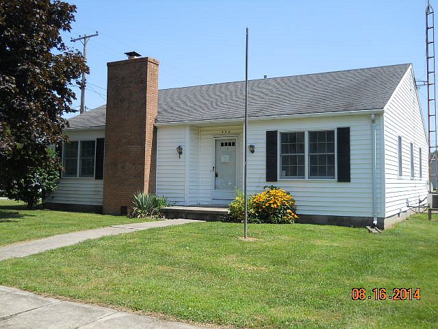 Concrete driveway and patio compliment the exterior of this three bedroom/two bath ranch home situated on a corner lot. Interior features new floor coverings, master suite with double closets, open kitchen dining area, living room fireplace, and first floor laundry.